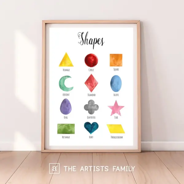 Geometric Shapes Downloadable Prints Water Color Montessori Educational Posters For Kids Boys Girls Children Room Learning Home School