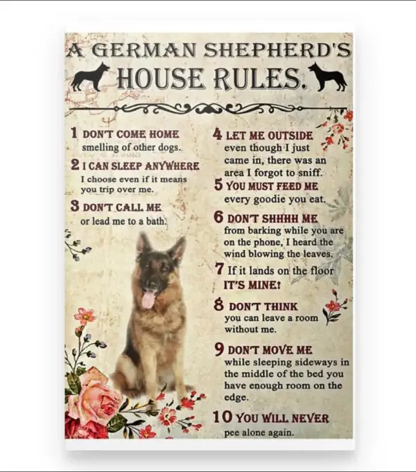 German Shepherd House Rules Framed Canvas Print
