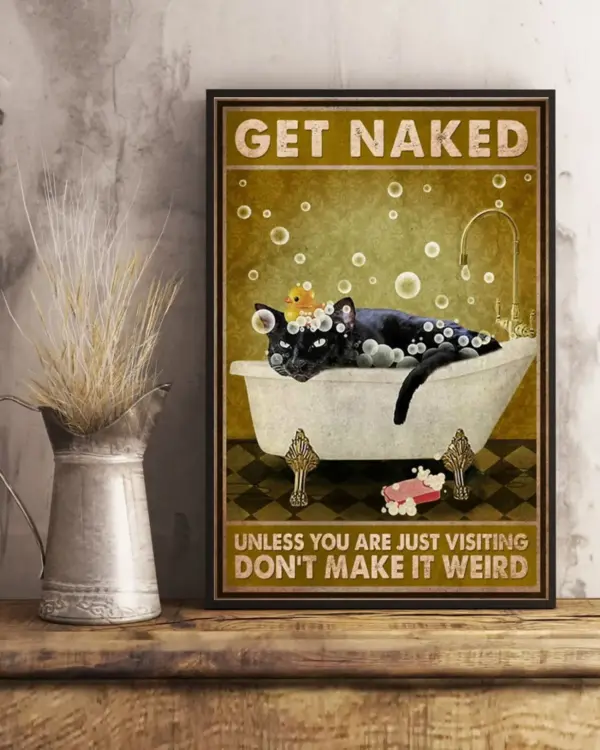Get Naked Black Cat Poster Bathroom Funny Cat Lovers Bathroom Wall Art Quotes Bathroom Wall Decor Vertical Poster No Framed