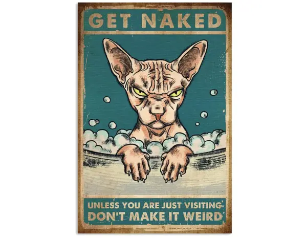 Get Naked Cats Poster Wall Decor Cats Art Print Cats Wall Decor Funny Poster Cats Lover Sphynx Cat Bathroom Poster