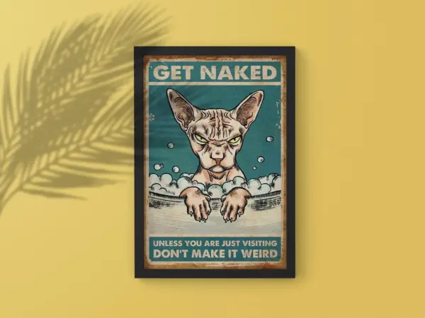 Get Naked Unless You Are Just Visiting Don T Make It Weird Poster Funny Bathroom Artwork Bathroom Cat Watching Wall Art Signs For Home