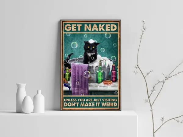 Get Naked Unless You Are Visiting Poster Funny Bathroom Poster Black Cat Poster Kitty Print Bathroom Wall Art Signs For Home