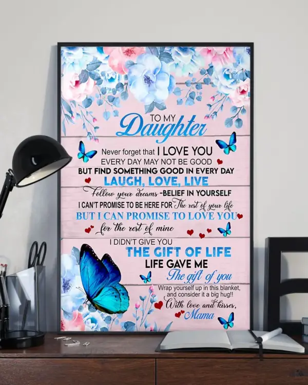 Gift Butterfly To My Daughter Poster Never Forget That I Love You Vintage Wall Art