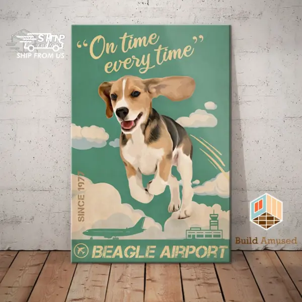 Gift For Beagle Lovers Custom Year Poster Canvas Dog Beagle Airport Canvas Poster Wall Art Coffee Shop Bathroom Home Living Decor