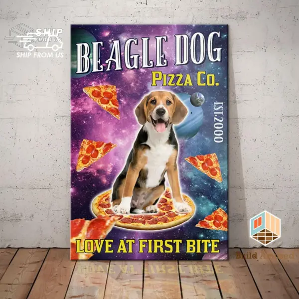 Gift For Beagle Lovers Custom Year Poster Canvas Dog Beagle Dog Pizza Company Canvas Poster Wall Art Coffee Shop Bathroom Home Living Decor