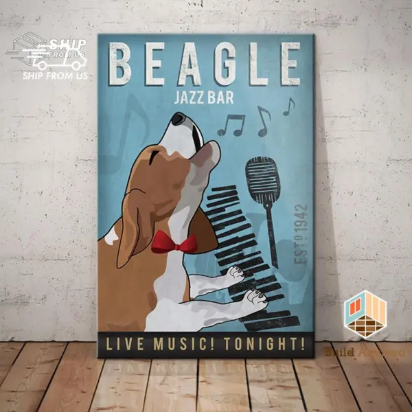 Gift For Beagle Lovers Custom Year Poster Canvas Dog Beagle Jazz Bar Canvas Poster Wall Art Coffee Shop Bathroom Home Living Decor
