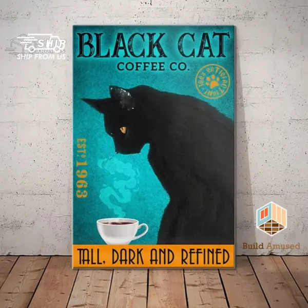 Gift For Black Cat Lovers Custom Year Poster Canvas Cat Black Cat Coffee Coffee Canvas Poster Wall Art Coffee Shop Bathroom Home Decor