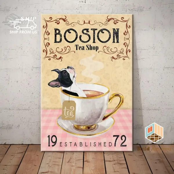Gift For Boston Terrier Lovers Custom Year Poster Canvas Dog Boston Tea Shop Canvas Poster Wall Art Coffee Shop Bathroom Home Living Decor