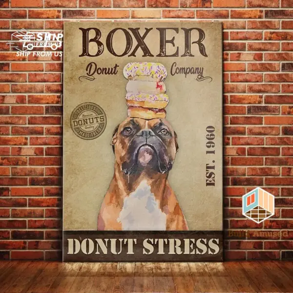 Gift For Boxer Lovers Custom Year Poster Canvas Dog Boxer Donut Company Canvas Poster Wall Art Coffee Shop Bathroom Home Living Decor
