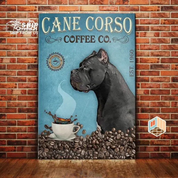 Gift For Cane Corso Lovers Custom Year Poster Canvas Dog Cane Corso Coffee Company Canvas Poster For Coffee Shop Bathroom Home Decor