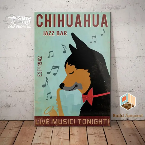 Gift For Chihuahua Lovers Custom Year Poster Canvas Dog Chihuahua Jazz Bar Canvas Poster Wall Art Coffee Shop Bathroom Home Living Decor