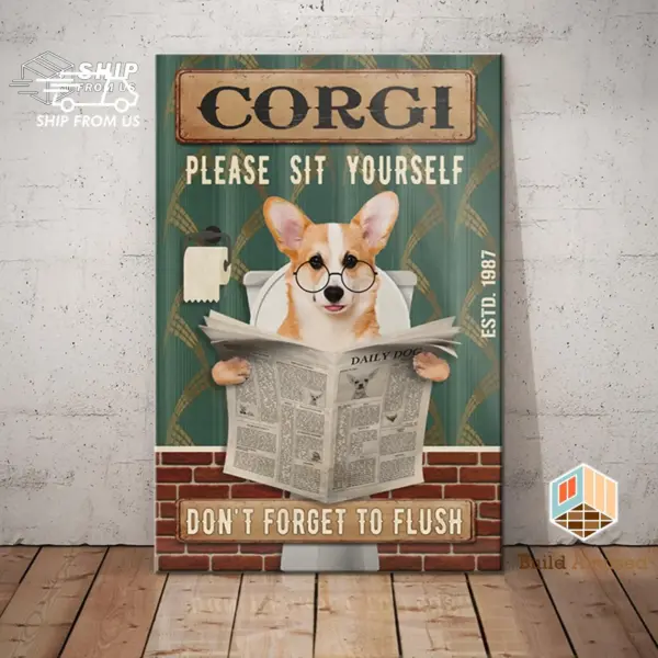 Gift For Corgi Lovers Custom Year Poster Canvas Dog Corgi Toilet Canvas Poster Wall Art Coffee Shop Bathroom Home Living Decor