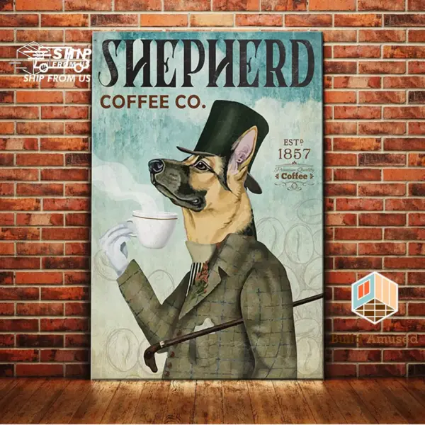 Gift For German Shepherd Lovers Custom Year Poster Canvas Dog Shepherd Coffee Company Canvas Poster Wall Art Coffee Shop Bathroom Home Decor