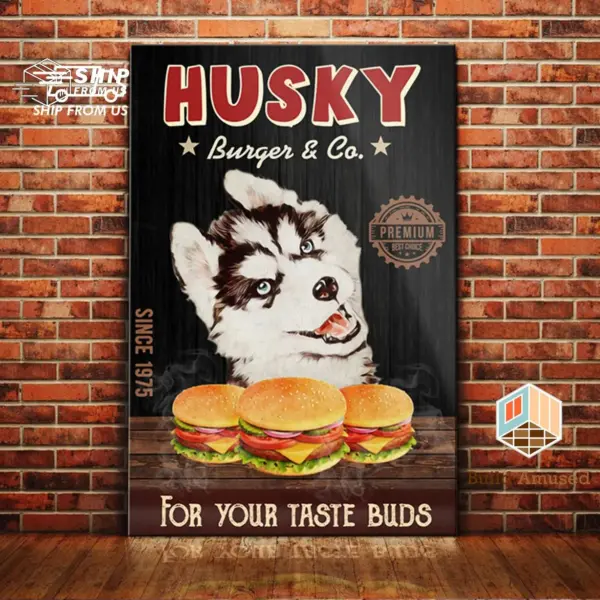 Gift For Husky Lovers Custom Year Poster Canvas Dog Husky Burger Company Canvas Poster Wall Art Coffee Shop Bathroom Home Living Decor
