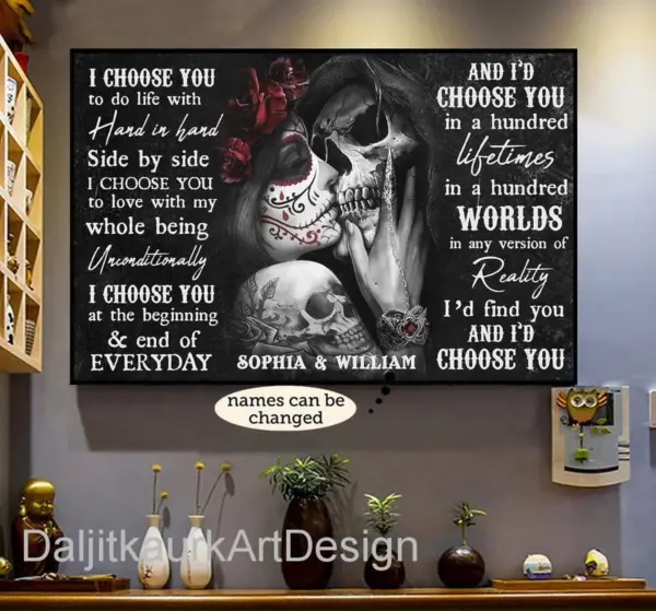 Gift For Lover Personalized I Choose You Skull Couple Kissing Poster Canvas Couple Canvas Wife And Husband Family Canvas Home Decor