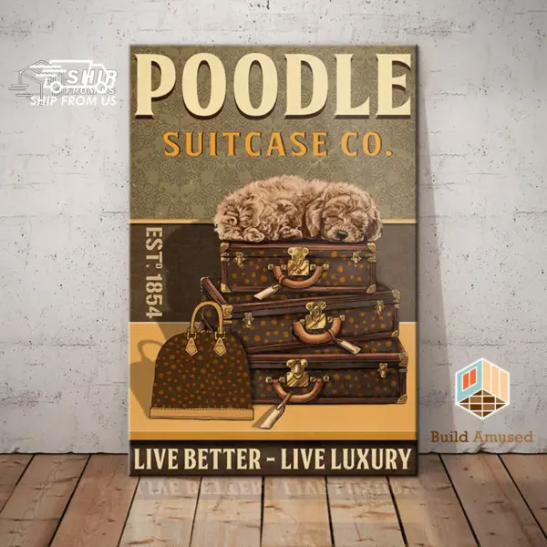 Gift For Poodle Lovers Custom Year Poster Canvas Dog Poodle Suitcase Company Canvas Poster Wall Art Coffee Shop Bathroom Home Living Decor