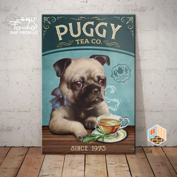 Gift For Pug Lovers Custom Year Poster Canvas Dog Puggy Tea Company Canvas Poster Wall Art Coffee Shop Bathroom Home Living Decor
