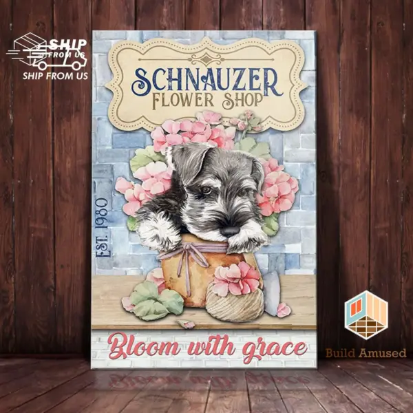 Gift For Schnauzer Lovers Custom Year Poster Canvas Dog Schnauzer Flower Shop Canvas Poster Wall Art Coffee Shop Bathroom Home Decor
