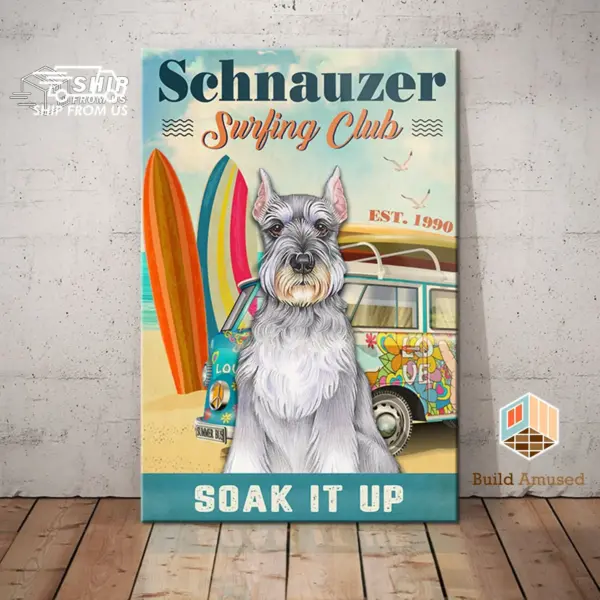 Gift For Schnauzer Lovers Custom Year Poster Canvas Dog Schnauzer Surfing Club Canvas Poster Wall Art Coffee Shop Bathroom Home Living Decor