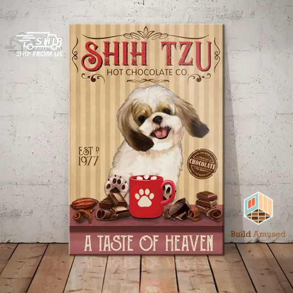 Gift For Shih Tzu Lovers Custom Year Poster Canvas Dog Shih Tzu Chocolate Company Canvas Poster Wall Art Coffee Shop Bathroom Home Decor