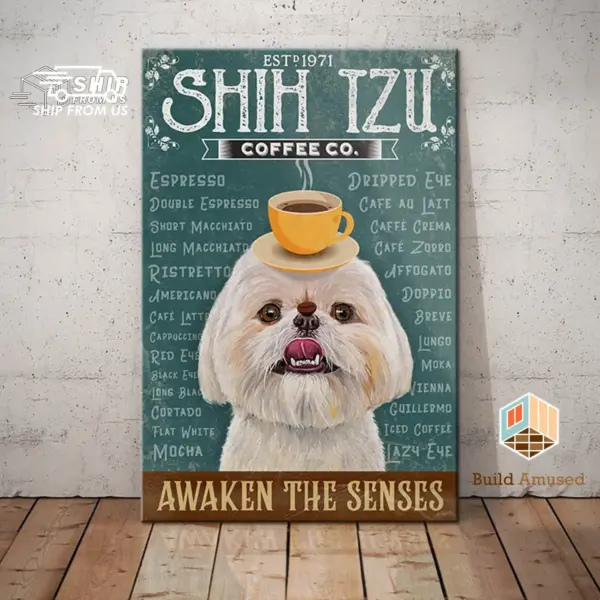 Gift For Shih Tzu Lovers Custom Year Poster Canvas Dog Shih Tzu Coffee Company Canvas Poster For Coffee Shop Bathroom Home Decor