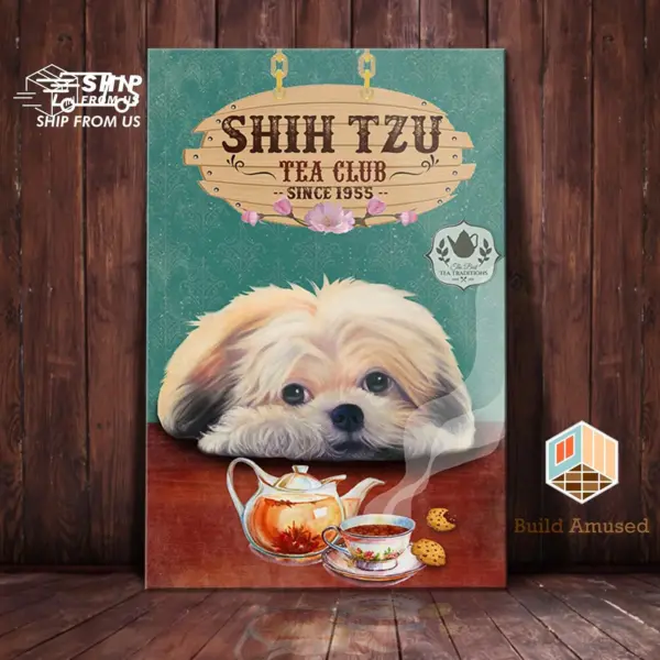 Gift For Shih Tzu Lovers Custom Year Poster Canvas Dog Shih Tzu Tea Club Canvas Poster Wall Art Coffee Shop Bathroom Home Living Decor