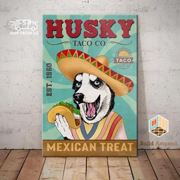 Gift For Siberian Husky Lover Custom Year Poster Canvas Dog Husky Taco Company Canvas Poster Wall Art Coffee Shop Bathroom Home Living Decor