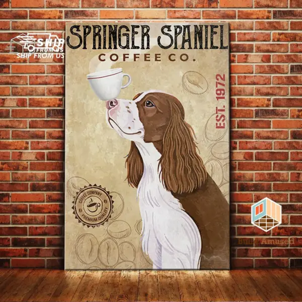 Gift For Springer Spaniel Lovers Custom Year Poster Canvas Dog Springer Spaniel Coffee Canvas Poster For Coffee Shop Bathroom Home Decor