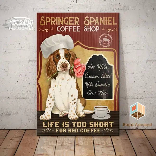 Gift For Springer Spaniel Lovers Custom Year Poster Canvas Springer Spaniel Coffee Canvas Poster Wall Art Coffee Shop Bathroom Home Decor