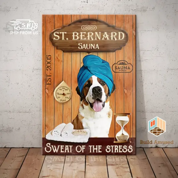 Gift For St Bernard Lovers Custom Year Poster Canvas Dog St Bernard Sauna Canvas Poster For Coffee Shop Bathroom Home Decor