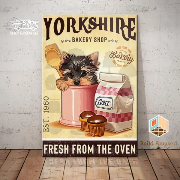 Gift For Yorkshire Terrier Lovers Custom Year Poster Canvas Dog Yorkshire Bakery Shop Canvas Poster Wall Art Coffee Shop Bathroom Home Decor