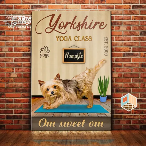 Gift For Yorkshire Terrier Lovers Custom Year Poster Canvas Dog Yorkshire Yoga Class Canvas Poster Wall Art Coffee Shop Bathroom Home Decor