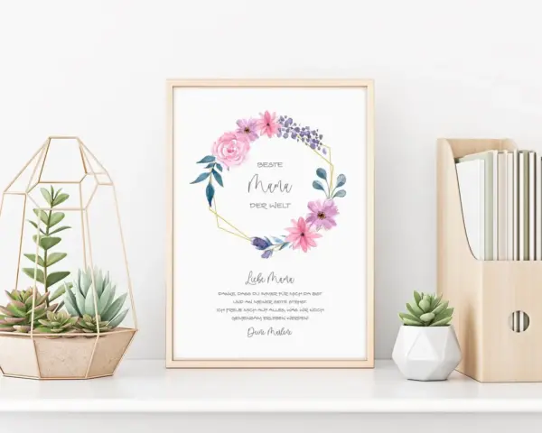 Gift Mother S Day Birthday Mama Poster Flower Wreath Flowers Purple Pink