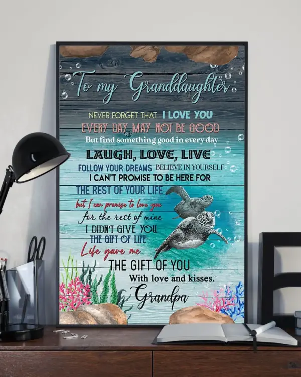 Gift Sea Turtle To My Granddaughter Never Forget That I Love You Poster Family Wall Art