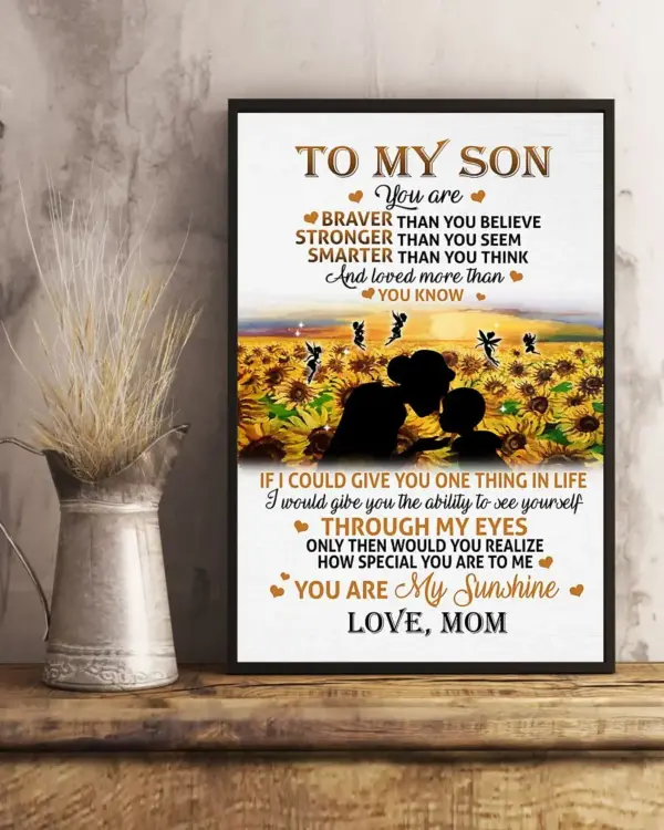 Gift Sunflower To My Son Poster You Are My Sunshine Vintage Wall Art