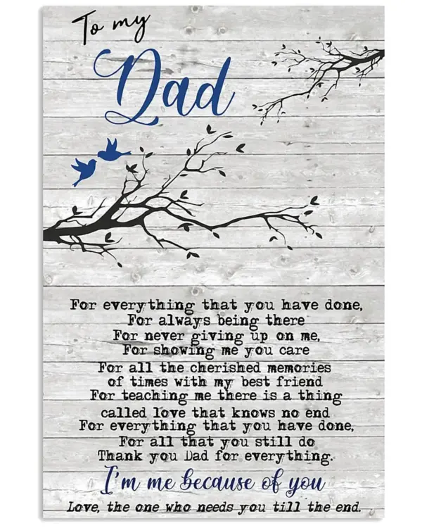 Gift To My Dad Love From Daughter Or Son Poster I M Me Because Of You Blue Birds Wood Background Room Home Decor Wall Art Gifts Idea Mostsuit