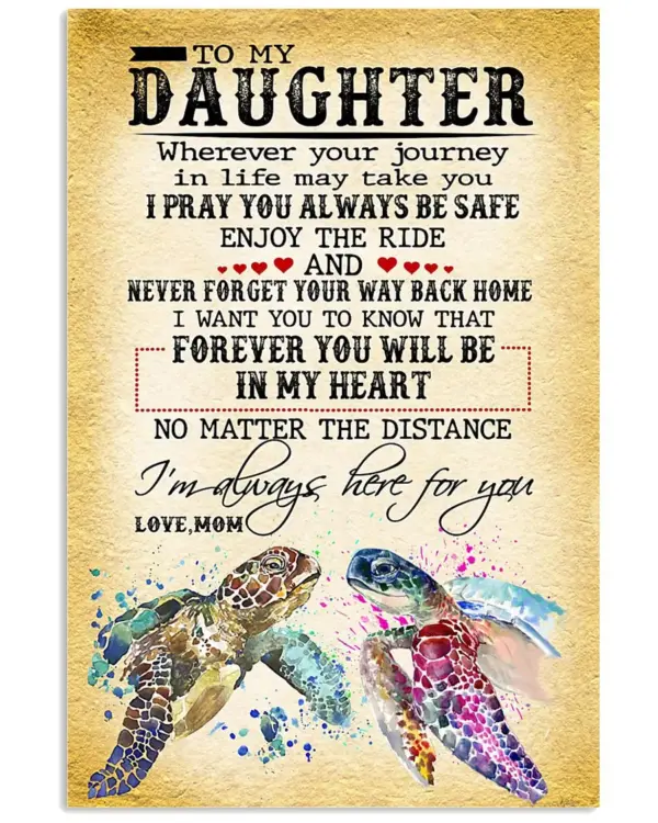 Gift To My Daughter From Mom Turtles Loves Watercolor Turtle Poster Room Home Decor Wall Art Gifts Idea Mostsuit