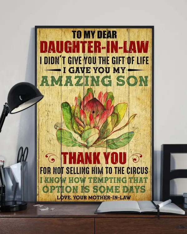 Gift To My Daughter In Law Poster Thanks For Not Selling My Son To The Circus Wall Art
