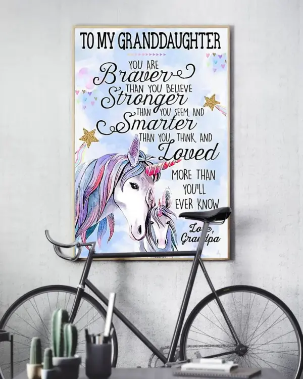 Gift Unicorn To My Granddaughter From Grandpa Poster Family Room Home Decor Wall Art Gifts Idea Mostsuit