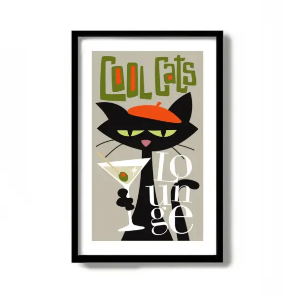 Gin Gifts Mid Century Modern Art Black Cat Art Print Martini Art Cocktail Poster Bartender Gifts Cat Lover Gift Martini Glasses