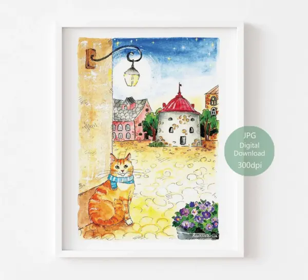 Ginger Cat Art Print Nursery Art Home Wall Decor Gift