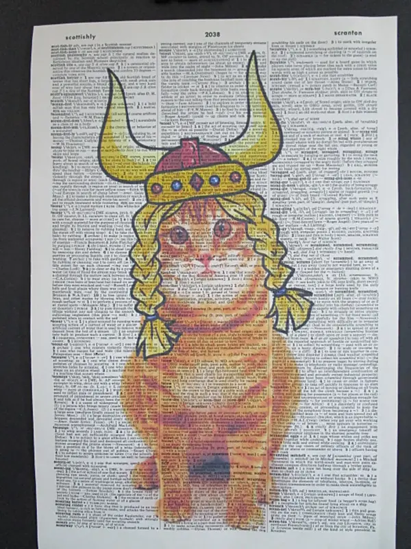 Ginger Cat Wall Print No 1047 Viking Cat Poster Orange Tabby Cat Housewarming Gifts Dictionary Art Prints Librarian Gifts Vet Gifts