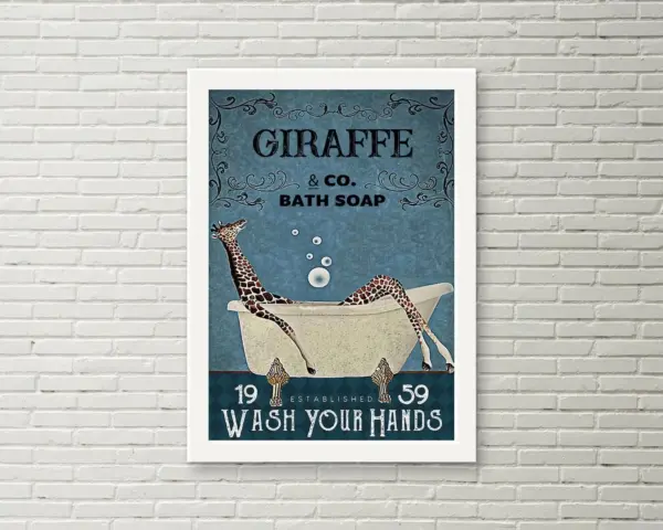 Giraffe Co Bath Soap Wash Your Hands Poster Giraffe Poster Funny Giraffe Wall Art Bathroom Decor Animal Poster Bathroom Wall Art