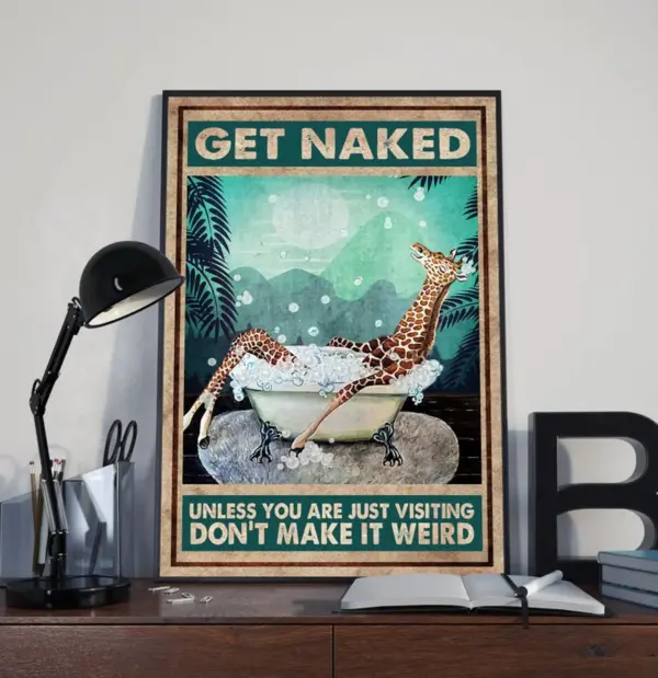 Giraffe Poster Get Naked Unless You Are Just Visiting Don T Make It Weird Giraffe Bathroom Wall Art Farmhouse Signs No Frame