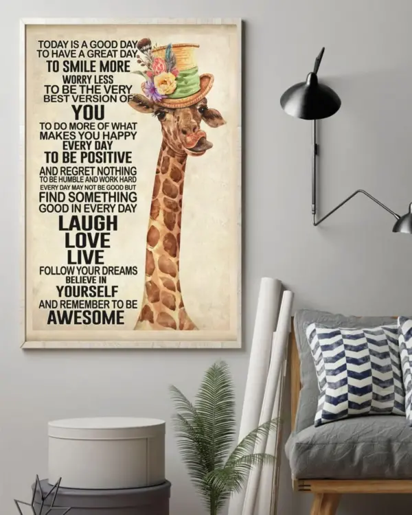 Giraffe Today Is A Good Day To Have A Great Day Poster Giraffe Poster Giraffe Print Best Gift Poster Giraffe To Smile More Worry Poster