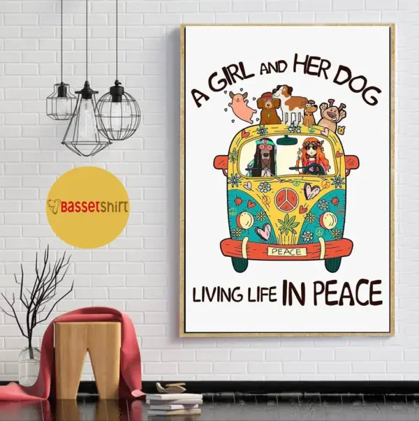 Girl And Her Dog Living Life In Piece Hippie Car Poster