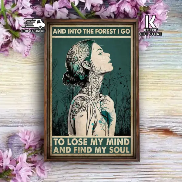 Girl And Into The Forest I Go To Lose My Mind And Find My Soul Poster Camper Camping Home Living Decor Poster