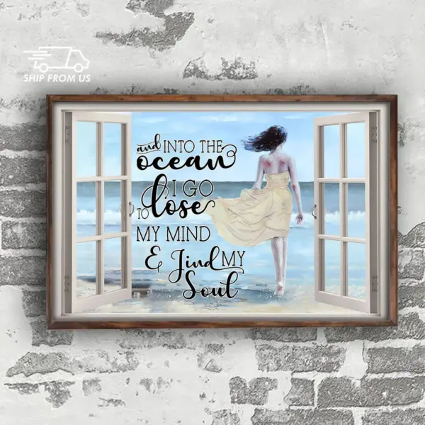 Girl And Into The Ocean I Go To Lose My Mind And Find My Soul Poster Beach Lovers Gifts Home Living Decor Poster