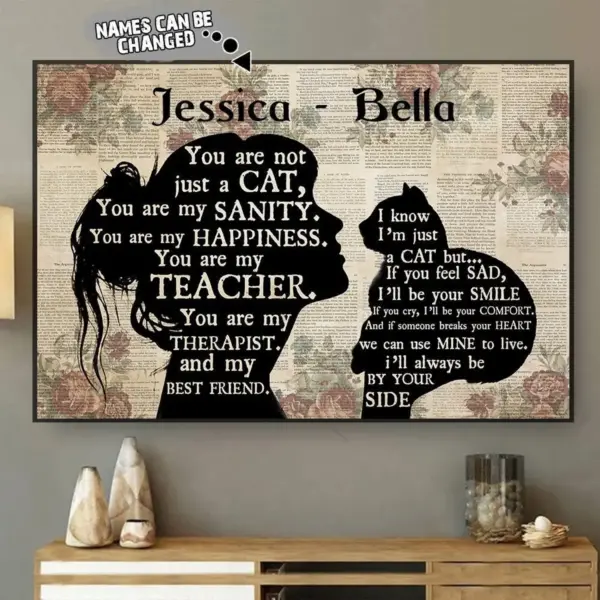 Girl Cat Silhouette Custom Name Poster Love Reading Poster Love Book Poster Poster Art Best Gifts Ever Signs For Home Wall Decoration