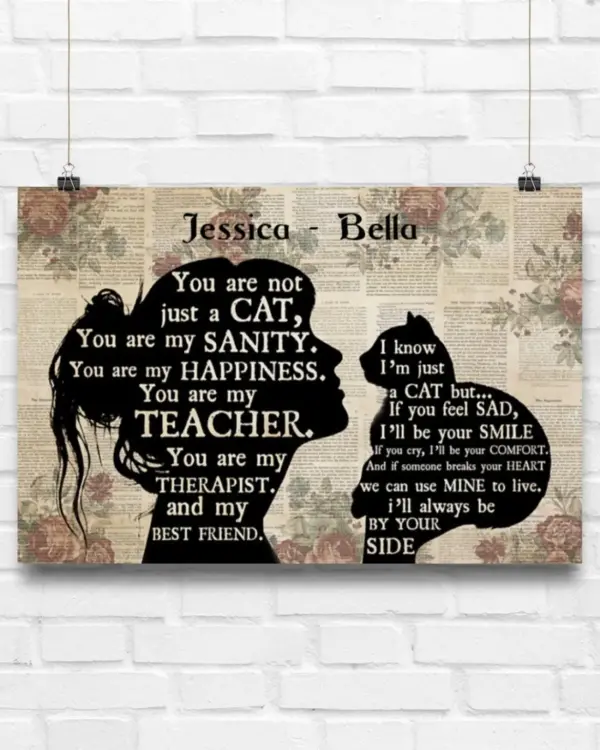 Girl Cat Silhouette Horizontal Poster Cat Poster Girl And Cat Poster No Frame